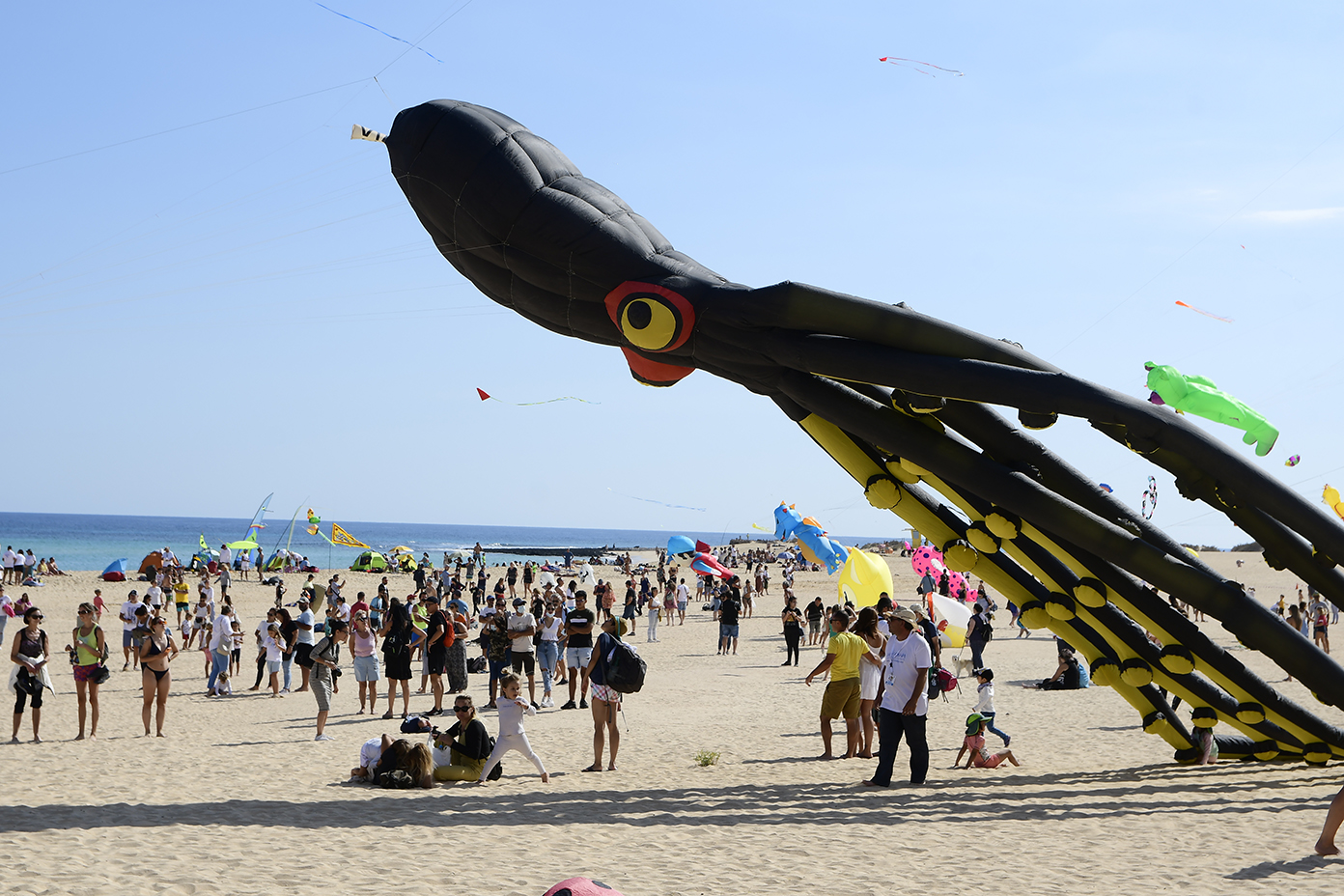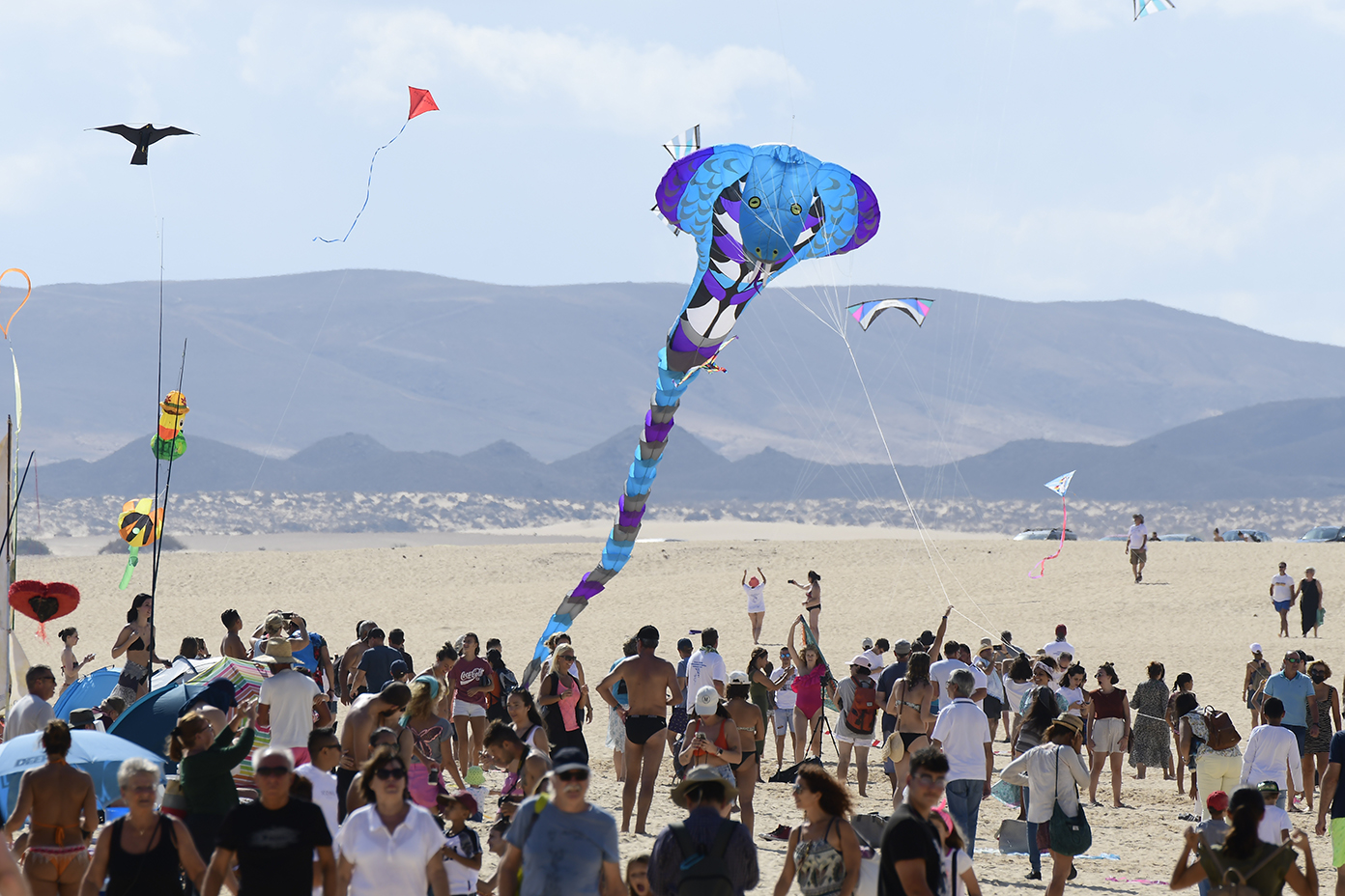 El Festival Internacional de Cometas de Corralejo cerro hoy, domingo 14 de noviembre, una exitosa 34ª edición que ha congregado a más de 7.000 personas a lo largo del fin de semana en la Playa del Dormidero para admirar las hasta 300 cometas que han volado de forma simultánea en exhibición, los combates en el aire y las novedosas actividades paralelas del Wind Festival, con talleres, pasacalles y conciencia ecológica, que dejan la miel en los labios para una edición 2022 que conmemorará el 35 aniversario del evento.