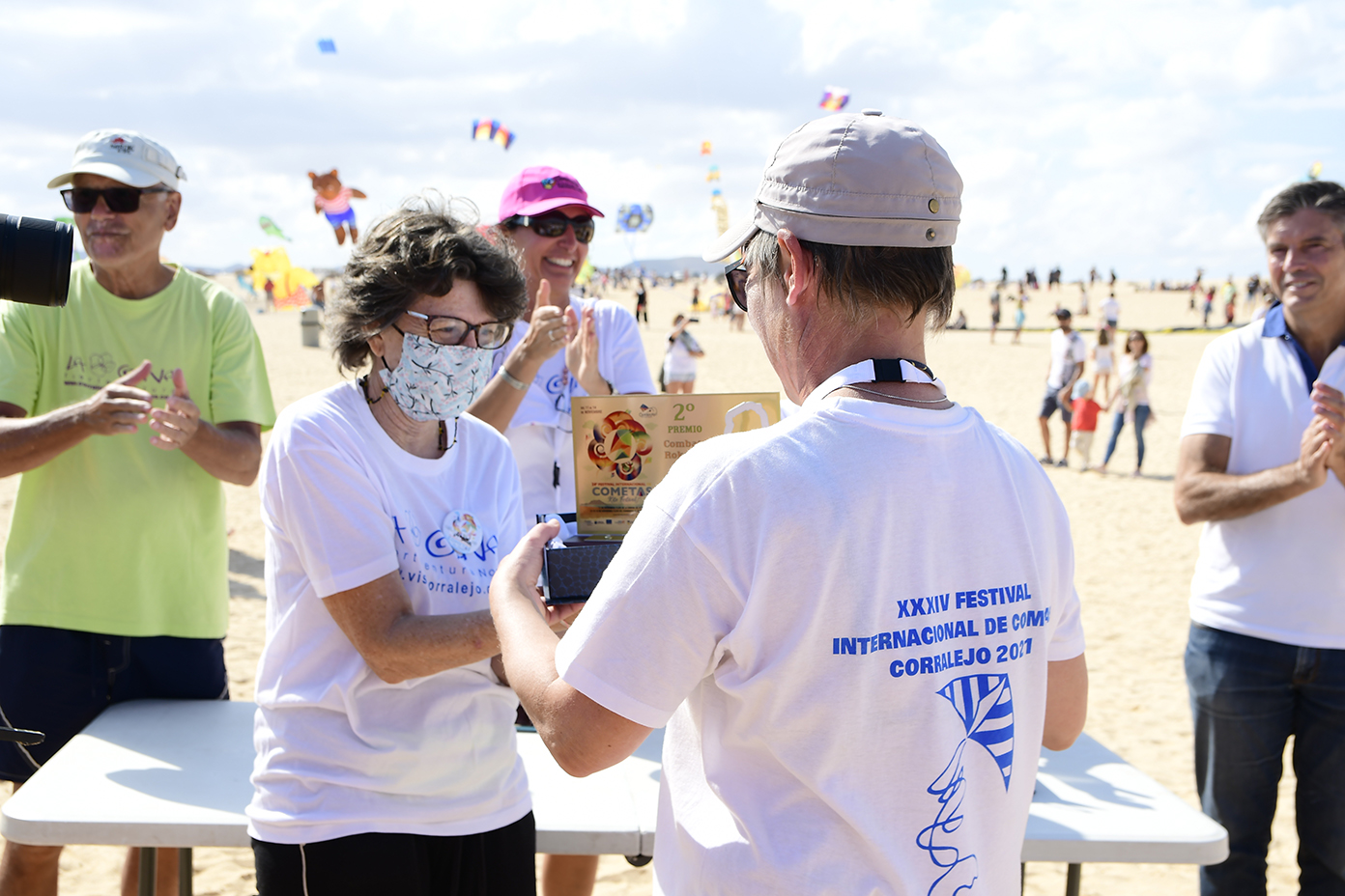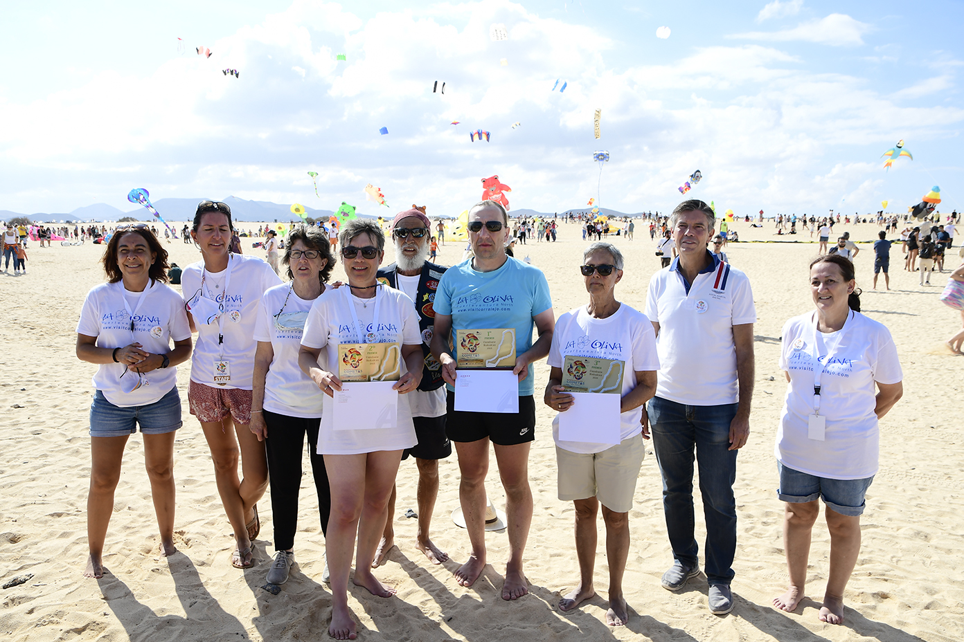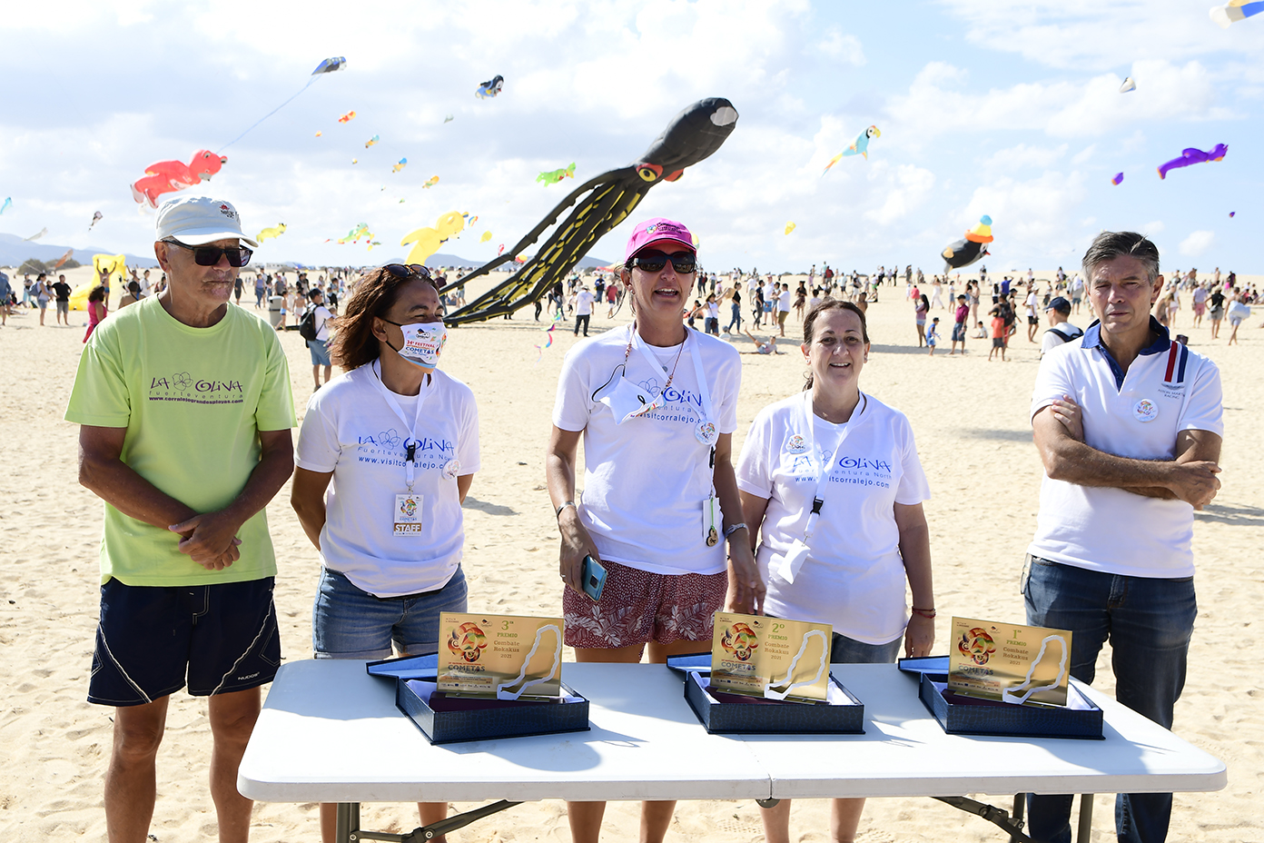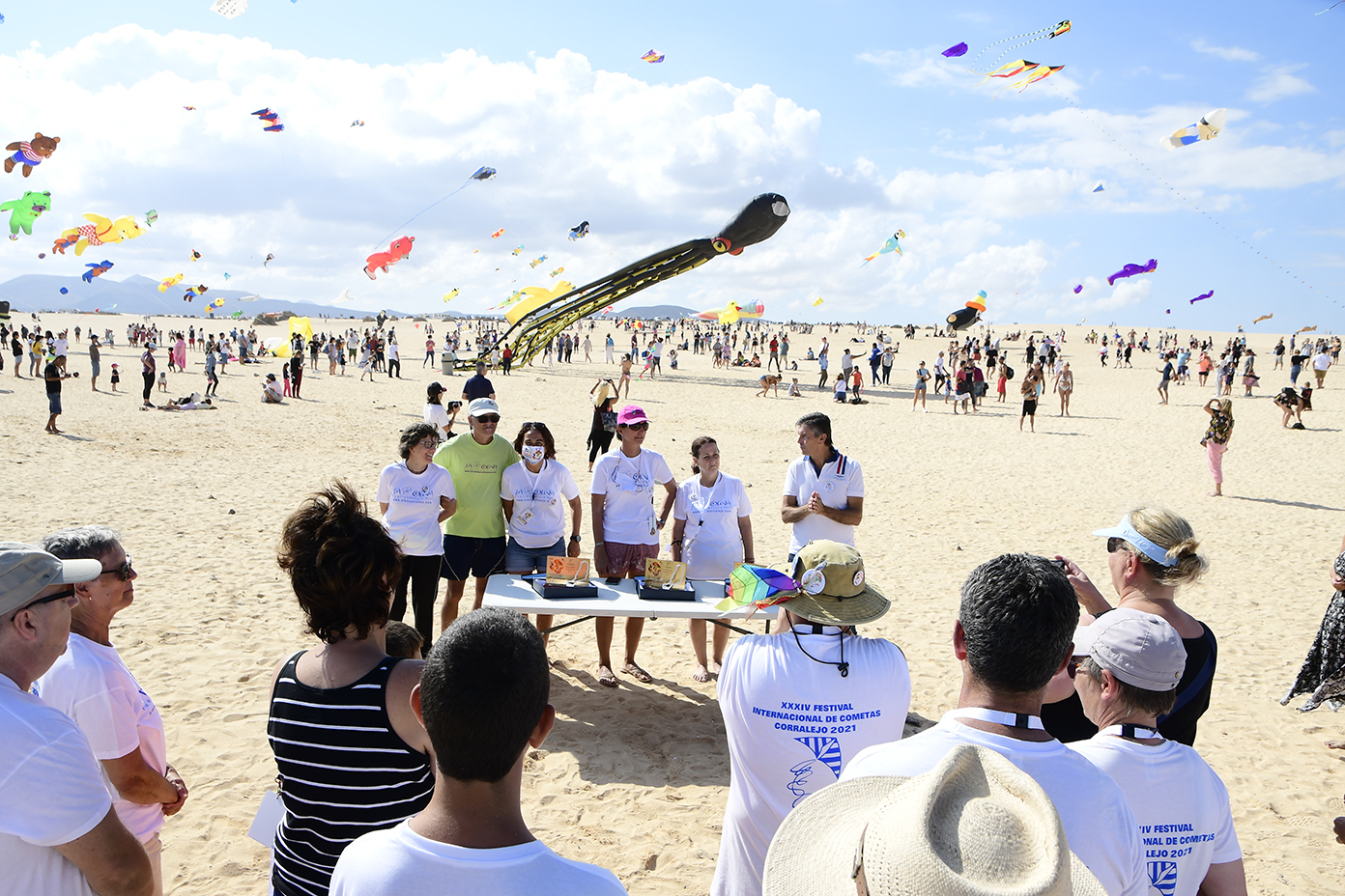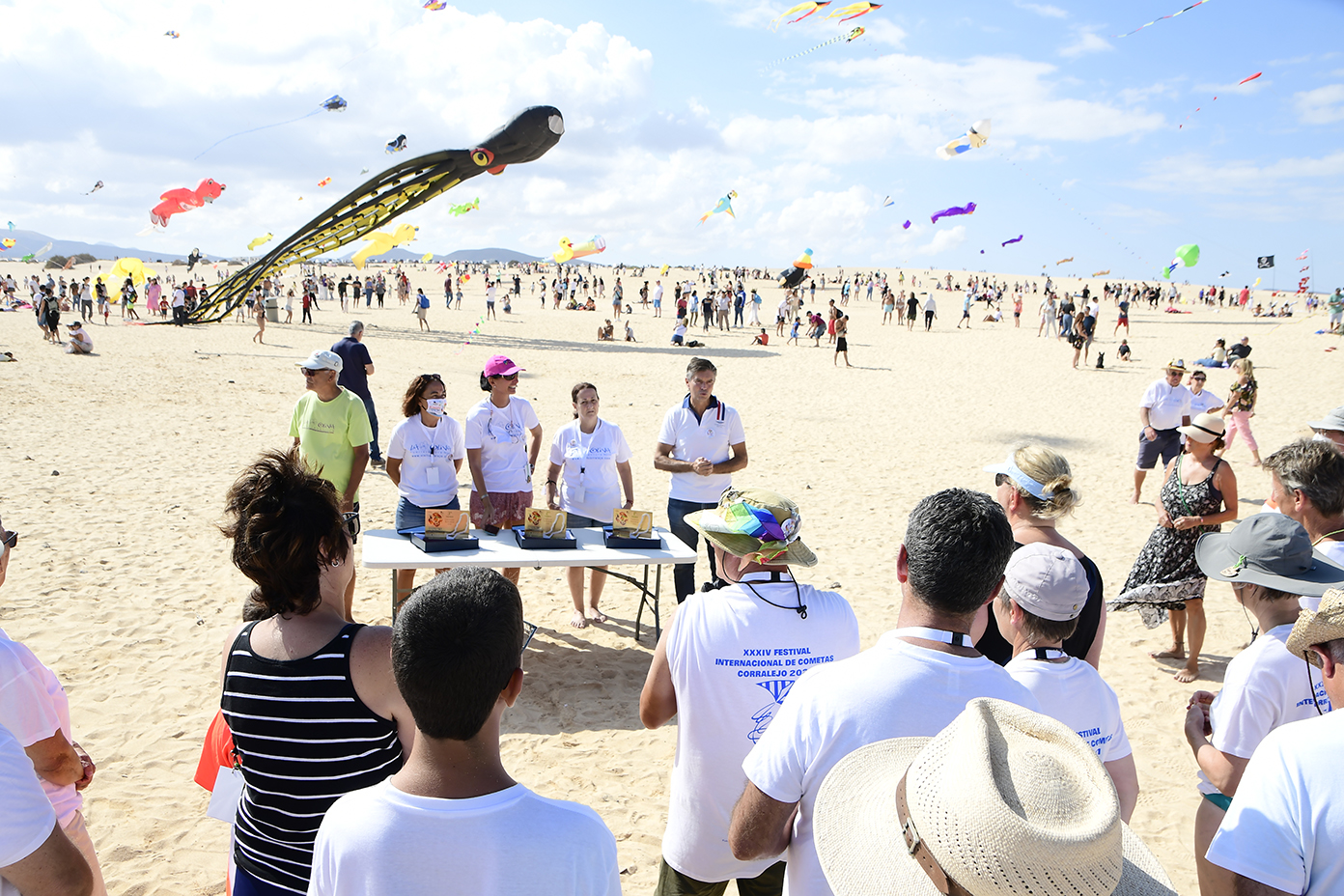 A partir de las 13 horas del mediodía se producía el acto de cierre oficial mientras cientos de personas se congregaban desde las primeras horas de la mañana en la Playa de El Dormidero para disfrutar de un viento que hoy se hizo de rogar, pero acabó presentándose alrededor de las 12 de la mañana, de forma sutil pero estable, con ráfagas de entre 10 y 15 kilómetros por hora, fuerza suficiente para que la espectacularidad de las cometas de los más de 150 cometistas profesionales y amateurs inscritos oficialmente en el evento, arribados de distintos rincones de Europa y América a las Dunas de Corralejo.