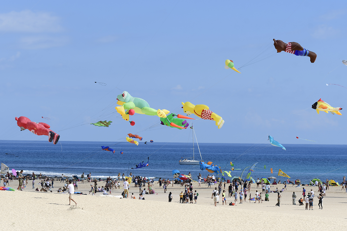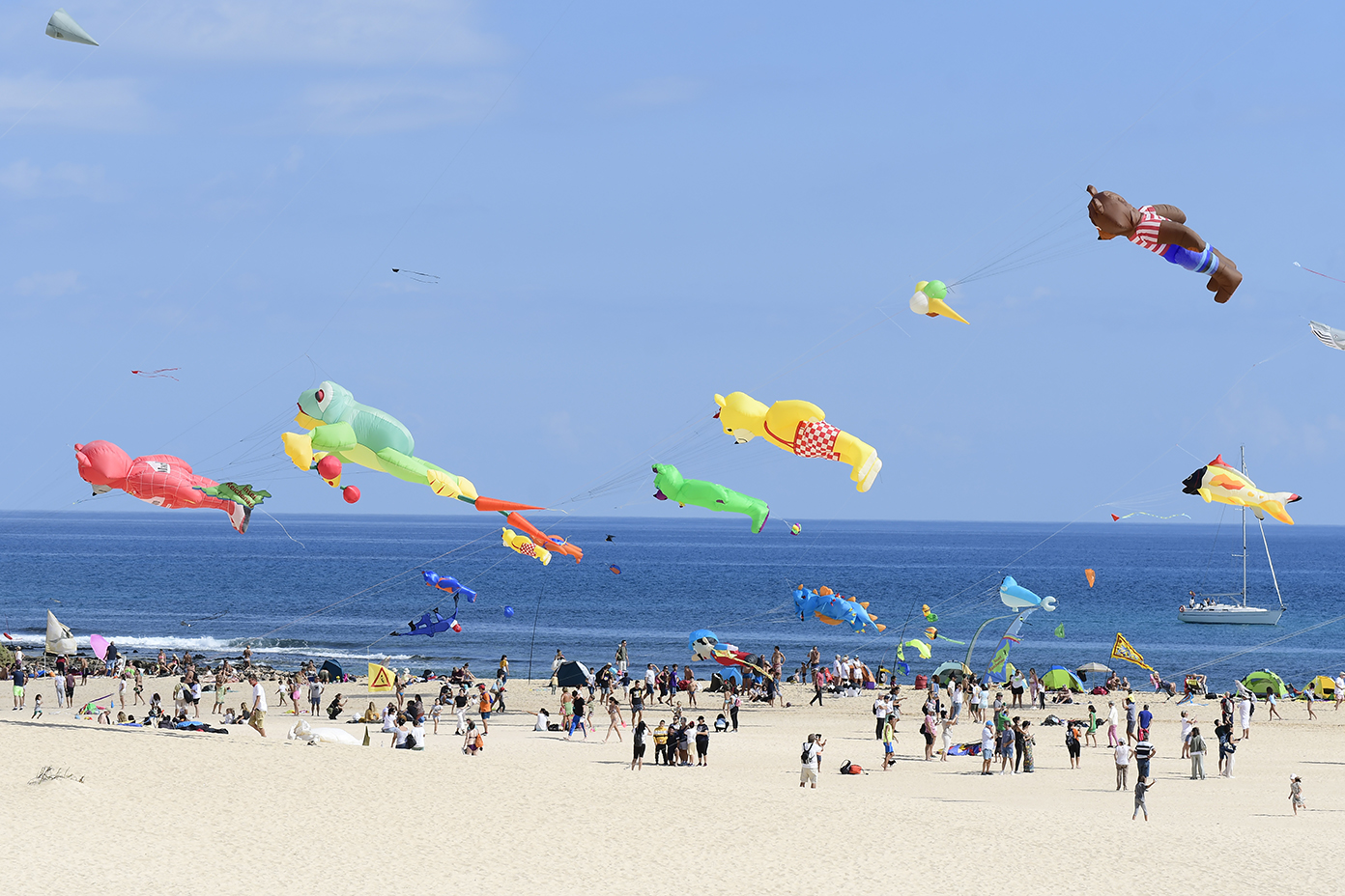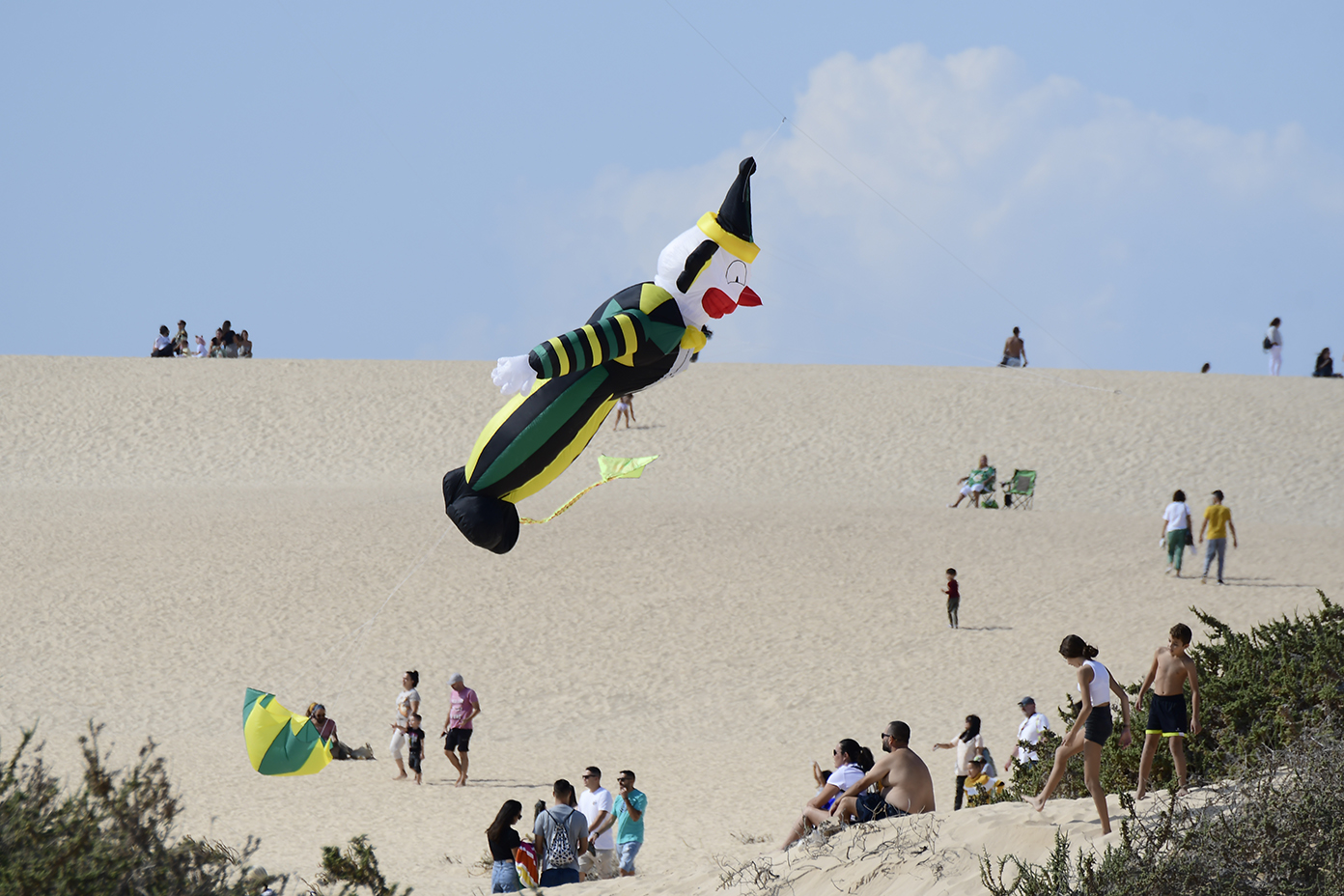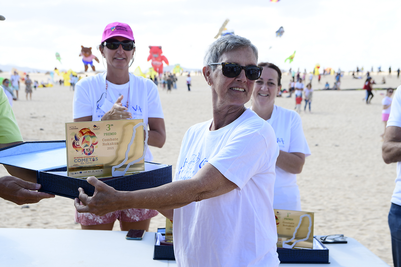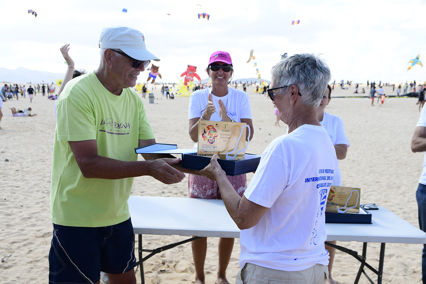 A partir de las 13 horas del mediodía se producía el acto de cierre oficial mientras cientos de personas se congregaban desde las primeras horas de la mañana en la Playa de El Dormidero para disfrutar de un viento que hoy se hizo de rogar, pero acabó presentándose alrededor de las 12 de la mañana, de forma sutil pero estable, con ráfagas de entre 10 y 15 kilómetros por hora, fuerza suficiente para que la espectacularidad de las cometas de los más de 150 cometistas profesionales y amateurs inscritos oficialmente en el evento, arribados de distintos rincones de Europa y América a las Dunas de Corralejo.