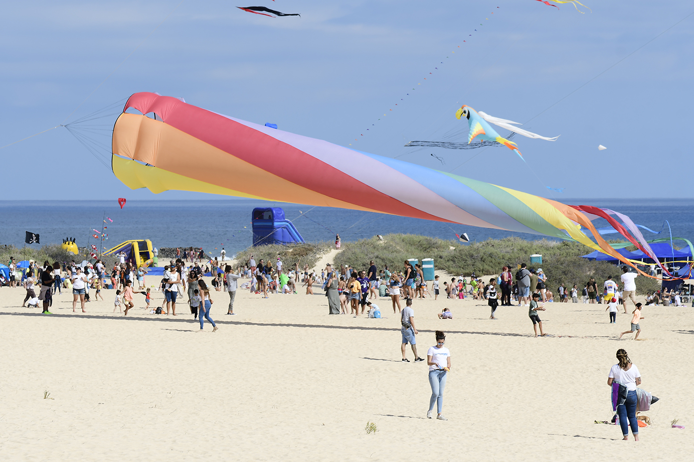 Los castillos hinchables, fuente de diversión para centenares de pequeños durante todo el fin de semana, completaron también hoy el más amplio programa de actividades que ha conocido el Festival de Cometas de Corralejo y que promete seguir creciendo de cara a su próxima edición prevista para noviembre de 2022.