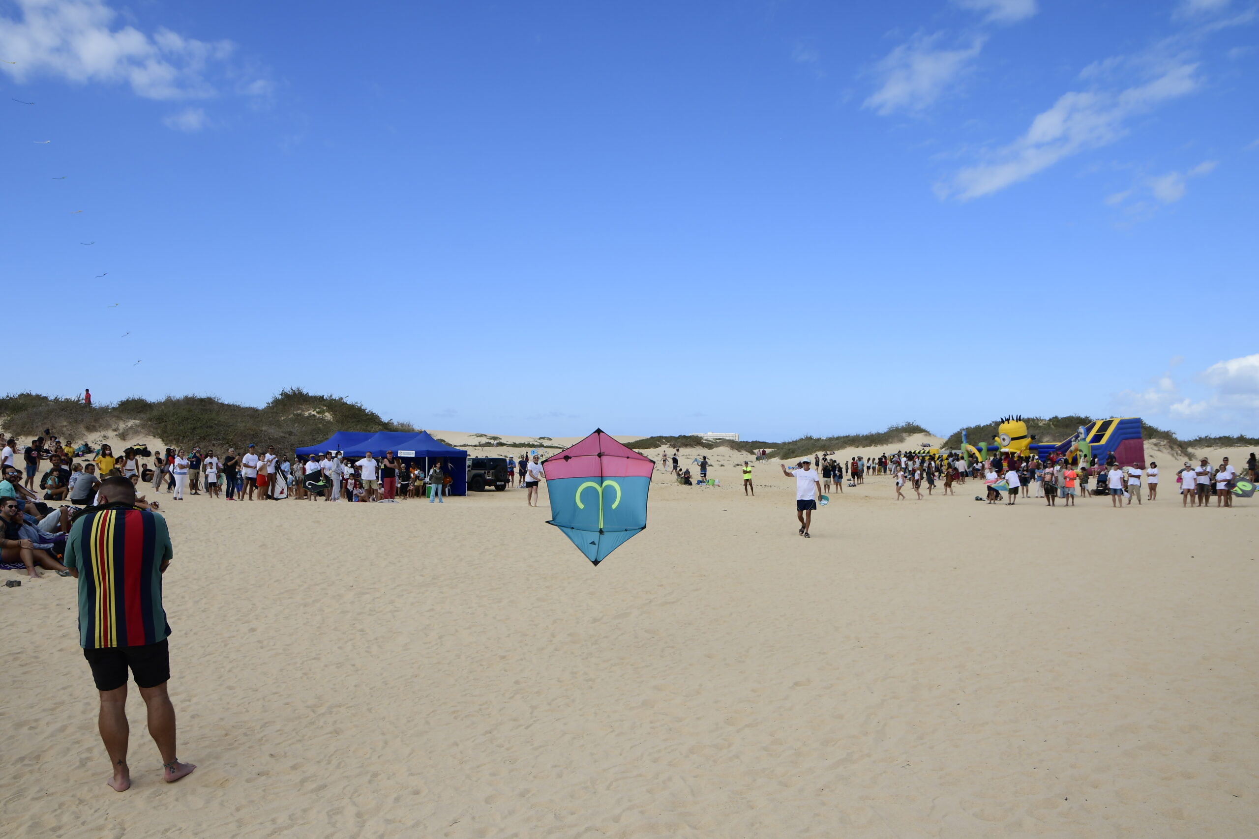 Los castillos hinchables, los talleres de elaboración de cometas por cortesía de ‘Torbellino y Ventolera’ y la actividad lúdica ‘Tu Huella Ecológica’, ideada con el fin de generar conciencia de sostenibilidad entre los participantes de todas las edades, completaron hoy el programa de actividades paralelas del Wind Festival, que continúa mañana con más talleres de elaboración de cometas y con el encuentro de ‘Limpieza de Playa’, previstos ambos entre las 11 de la mañana y las las 4 de la tarde.